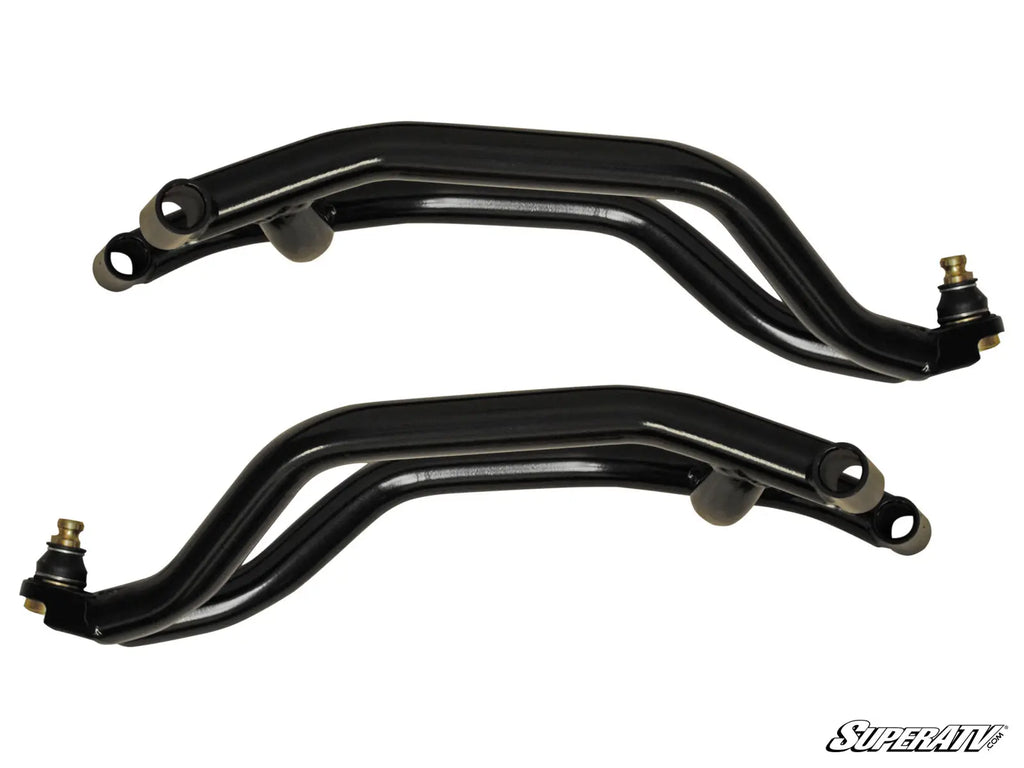 The unique bend design of these A-arms gives you 2” of additional ground clearance, allowing you to sail right over obstacles that used to leave you hung up. These A-arms also come with a 1” forward offset. By moving the ball joint 1” forward, you’re extending the length of your wheelbase. This small change to your suspension gives you more stability going over big rocks and logs. A forward offset also allows you to run larger tires without adding a lift kit. Just imagine all the fun you can have with a longer wheelbase, bigger tires, and extra ground clearance!