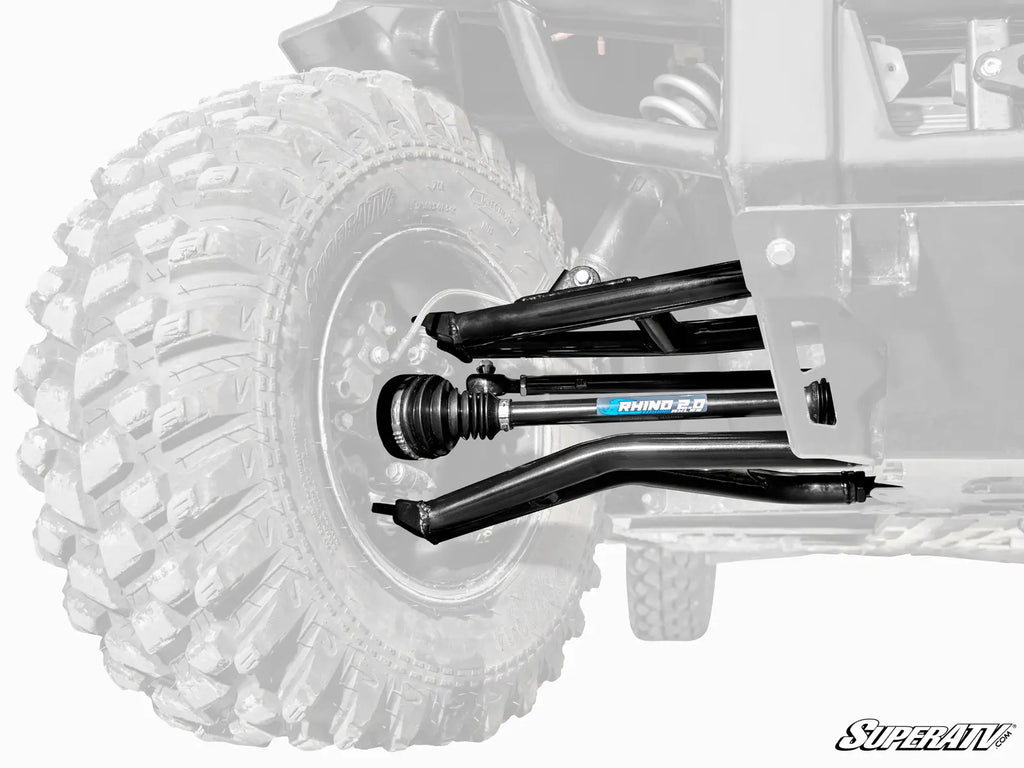 If you ride with beefy A-arms, then you'll need equally tough axles and tie rods. Our Rhino axles boast oversized joints and end-to-end chromoly construction, making them some of the toughest axles on the market. To finish the package, we offer solid steel tie rods with tougher heim joints. This suspension upgrade is unbeatable.